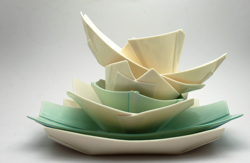 Man hätte es fast vermuten können: Pia Baastrup faltet die Modelle für ihre Porzellanentwürfe aus Papier. Es hat die gleiche Transparenz und Leichtigkeit wie ihre Porzellanobjekte wenn sie gebrannt sind.