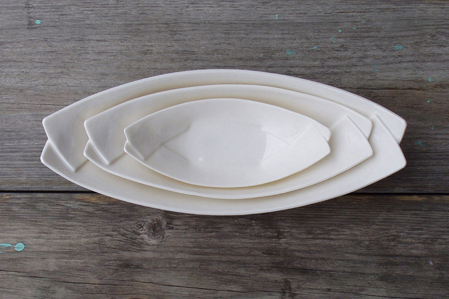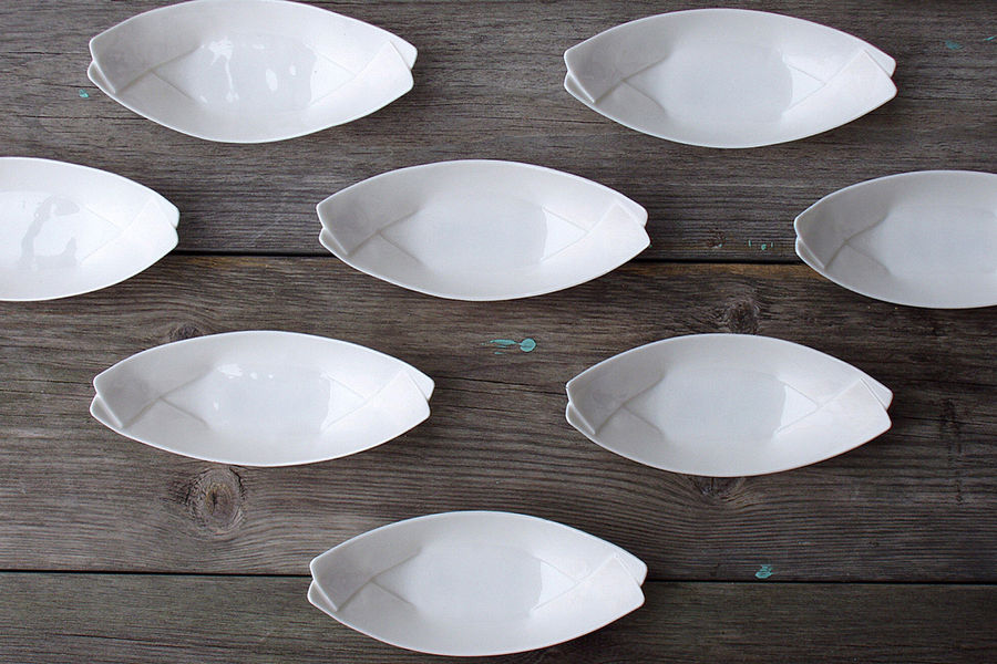 Die vielen Blicke über den Sund vor ihrer Werkstatt-Tür in Kopenhagen müssen Pia Baastrup nachhaltig inspiriert haben. Ihr feines Porzellangeschirr eignet sich nicht nur zur Pflege vielerlei Esskulturen. Und es weckt auch die Erinnerung an Kindertage in denen man selbst gefaltete Papierschiffchen auf fantasievolle Reisen schickte.